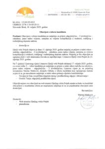 Obavijest o izboru kandidata – 2 izvšitelja – zamjena za komplikacije u trudnoći, rodiljni i roditeljski dopust radnice